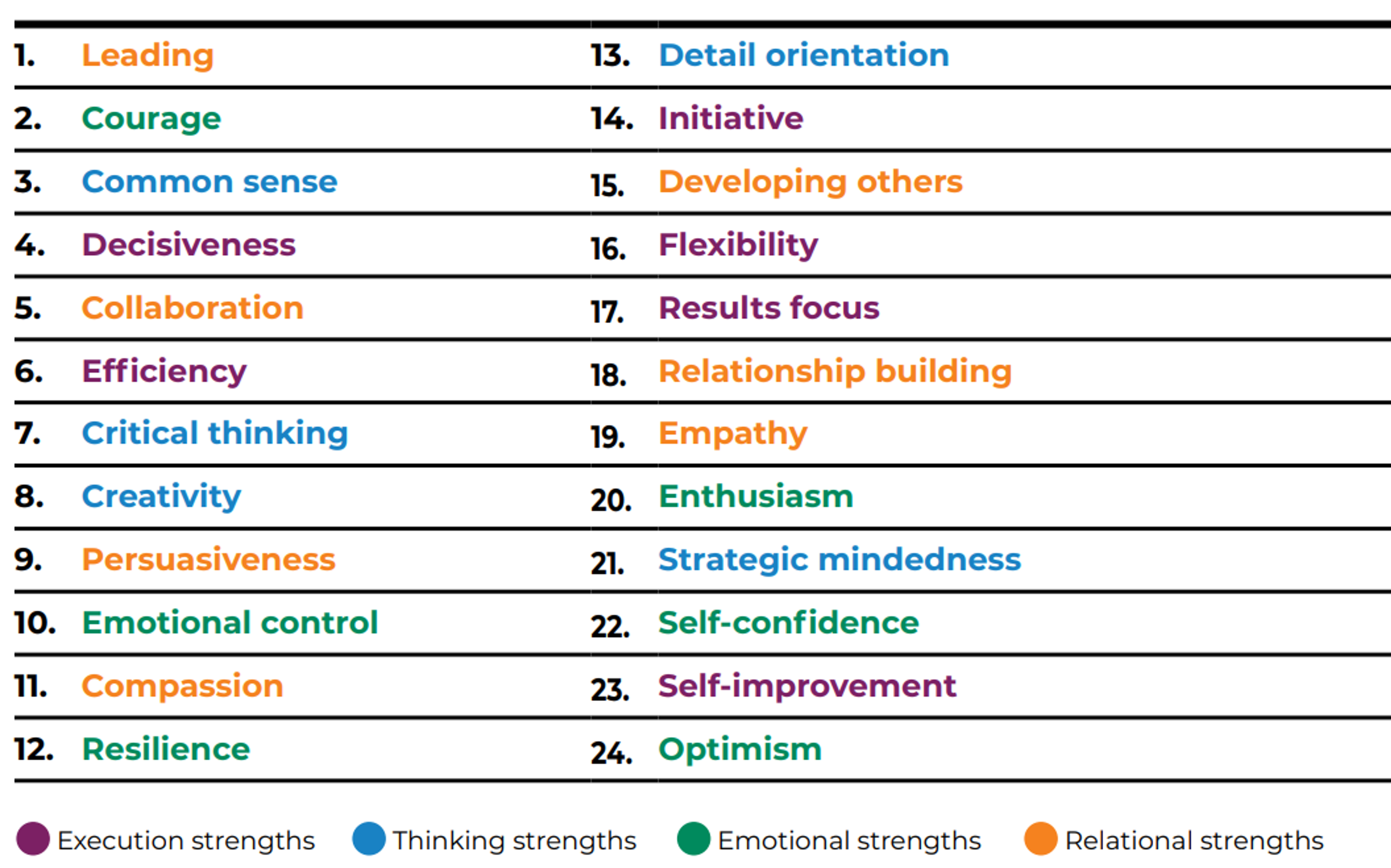 Strengths are qualities that energise us and that we are great at, or have the potential to become great at. This ranking demonstrates the most common strengths of leaders in the construction industry.