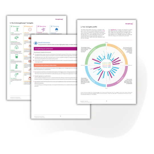 We measure 24 intrinsic qualities that are most closely related to performance at work, identifying what energises people and what drains their energy. We gather feedback on the visibility and effective use of strengths and measure factors that impact leadership and team effectiveness. Each of our assessments turns insights into productive behaviours in the flow of work.